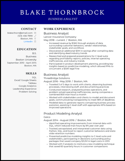 Business Analyst Resume Sample 3 Writing Tips Resume Genius